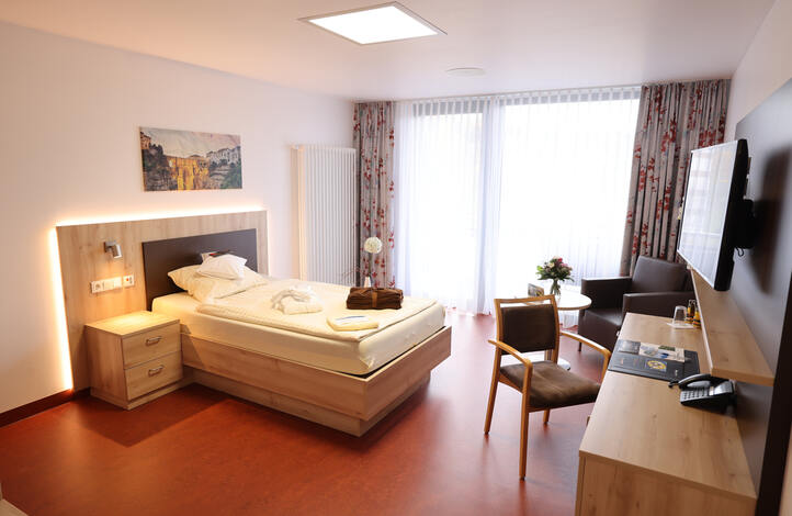 Ihr Therapieerfolg und Wohlbefinden sind unser Anspruch! Damit Ihr Aufenthalt so angenehm wie möglich wird, bieten wir alles für das Wohlbefinden unserer Patienten. Mit abwechslungsreichen Angeboten und individuellen Komfort-Paketen können Sie Ihre Unterbringung bei uns nach Ihren Wünschen gestalten und sich rundum wohlfühlen.