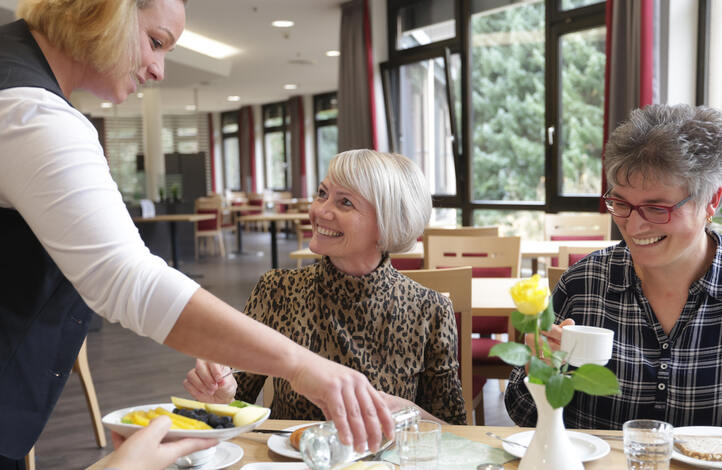 Wir bieten Ihnen eine abwechslungsreiche und moderne Küche, denn auch das leibliche Wohl ist für den Therapiefortschritt wichtig. Selbstverständlich sind unsere Köche bestens geschult und bereiten alle Mahlzeiten unter ernährungsphysiologischen Gesichtspunkten und besonders verträglich zu. Im großzügigen Speisesaal unserer Klinik kommt Restaurant-Ambiente auf.