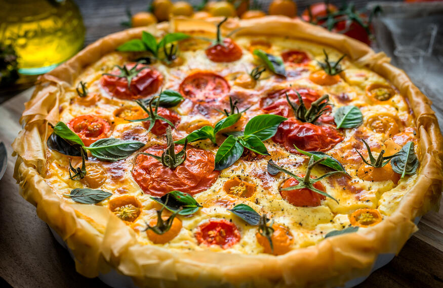 Kürbis-Hack-Quiche mit Kirschtomaten